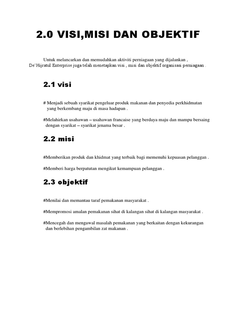 Contoh Visi Misi Dan Objektif Perniagaan Makanan / Dan sudah selayaknya visi misi dituangkan dalam bentuk catatan resmi tertulis yang nantinya akan dibaca banyak orang.